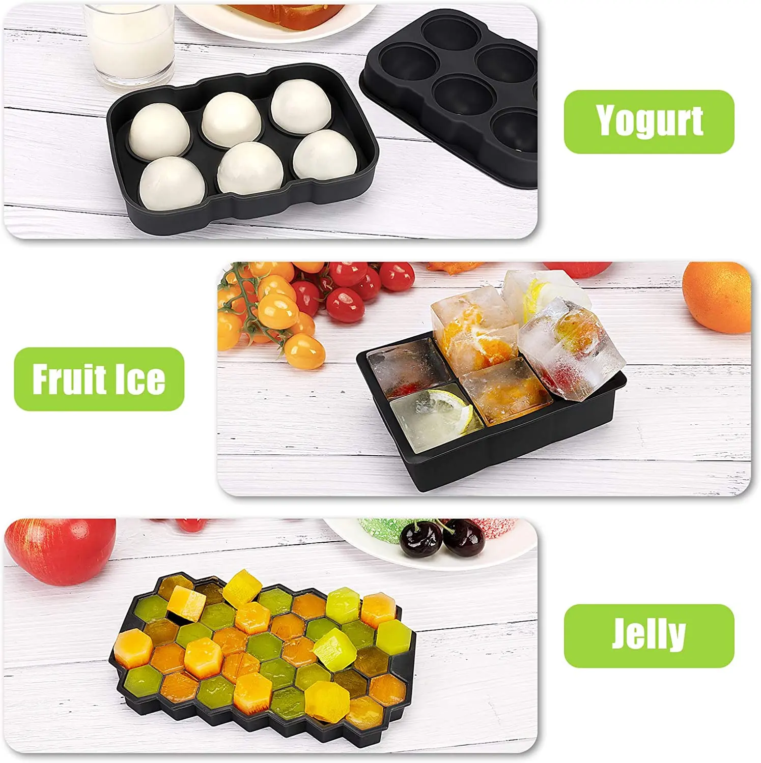 - Flexible silicone allows for effortless ice release