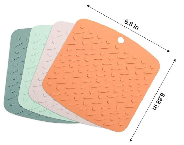 - [HEAT RESISTANT-460℉]: Silicone hot pads for kitchen can withstand high temperatures of 460°F, so you don’t have to worry about the hot pot damaging the table or your hands. silicone heat resistant mat also do not melt easily and can be used in oven, microwaves, refrigerators, dishwashers.