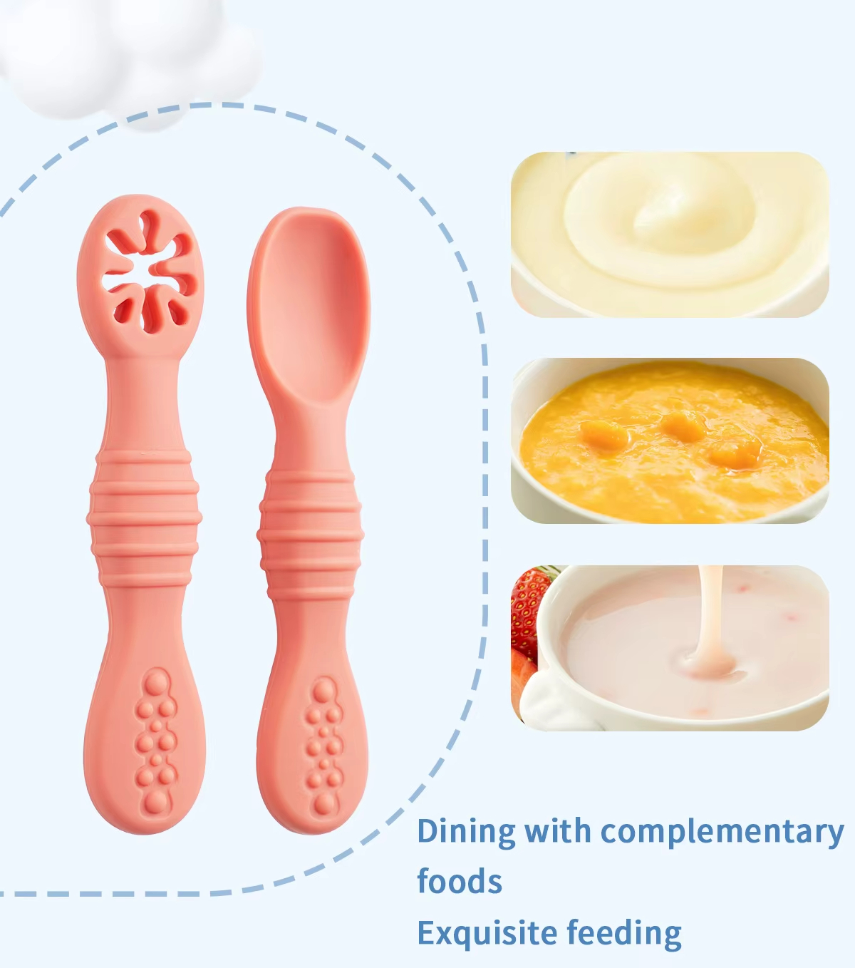 - Shallow & Safe Scoop Design: Features a shallow spoon head that measures the right amount of food per bite, effectively preventing overfeeding and reducing the risk of choking, while making it easy for babies to scoop purees and soft foods.