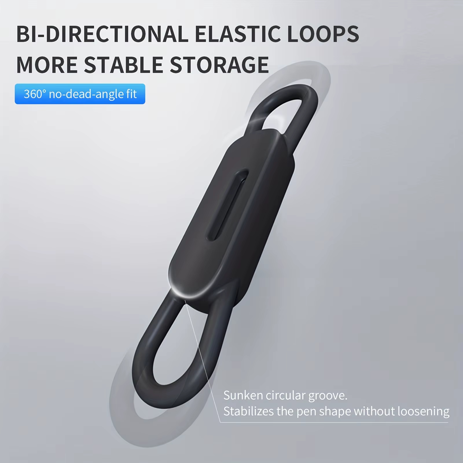• Stretchy & Adjustable:​ The flexible silicone loops expand to fit a wide range of pen sizes and shapes.